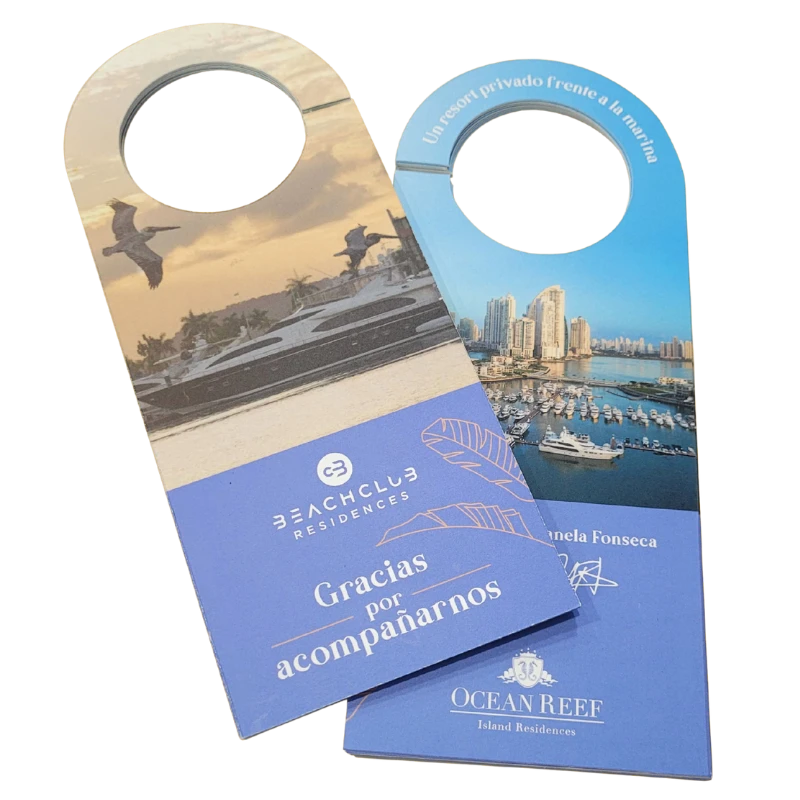 En Printshop Panamá imprimimos colgantes personalizados en papel de alta calidad y full color, ideales para destacar tu marca en puntos de venta, promociones o campañas publicitarias.